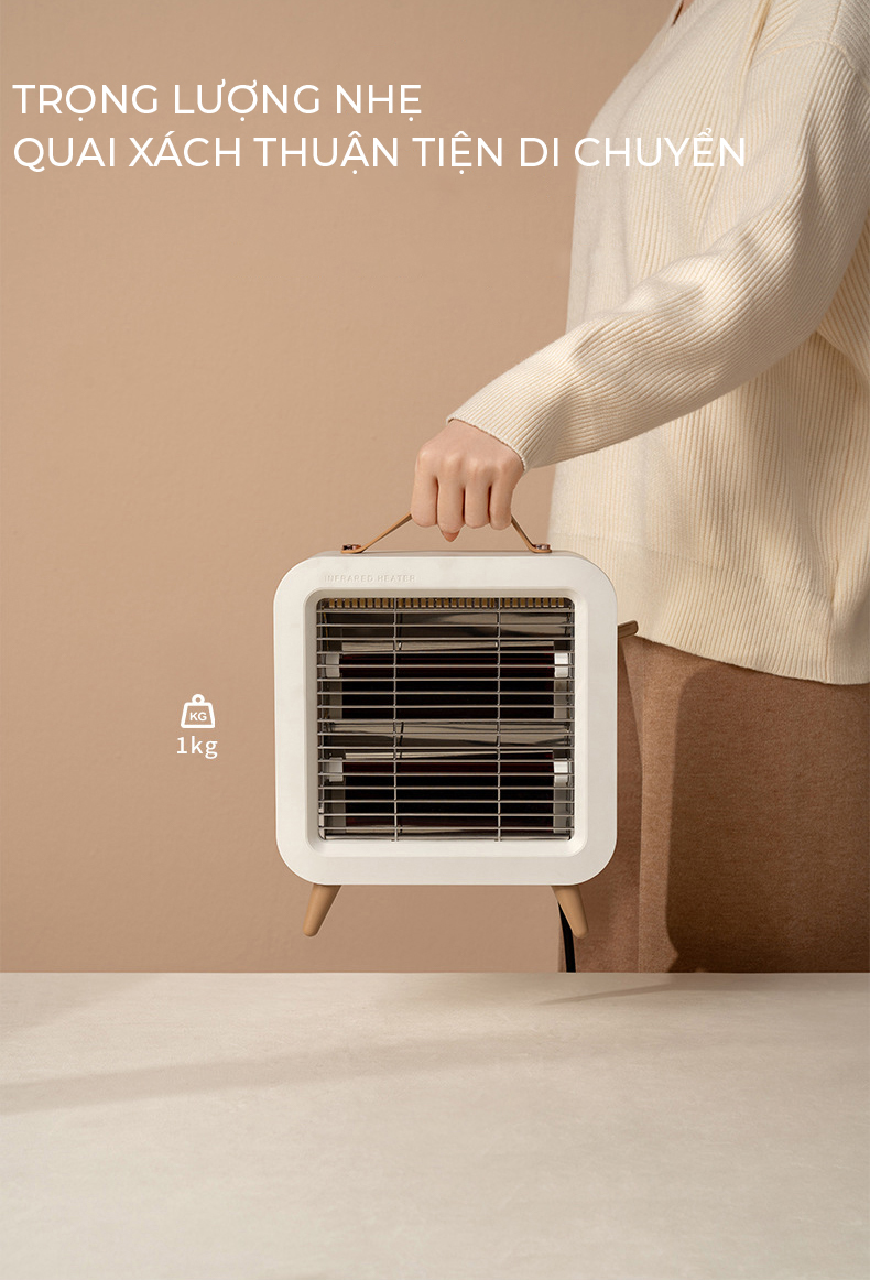 Thiết kế nhỏ gọn, tiện dụng Sưởi ấm nhanh, không gây tiếng ồn 3 mức phát nhiệt Có tính năng quay đảo hướng phát nhiệt, phạm vi phát nhiệt rộng Lưới tản nhiệt thiết kế