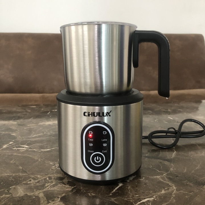 - Máy tạo bọt sữa chuyên nghiệp dùng cho quán 4 trong 1 Chulux JMF-988S là sản phẩm cao cấp chuyên dùng cho quán cà phê, dùng để đánh sữa tạo bọt và pha các loại thức uống nóng lạnh. Máy sở hữu dung tích lớn, tốc độ mạnh, không phát ra tiếng ồn, dung tích lớn, thiết kế sang trọng. Tính năng tạo bọt sữa