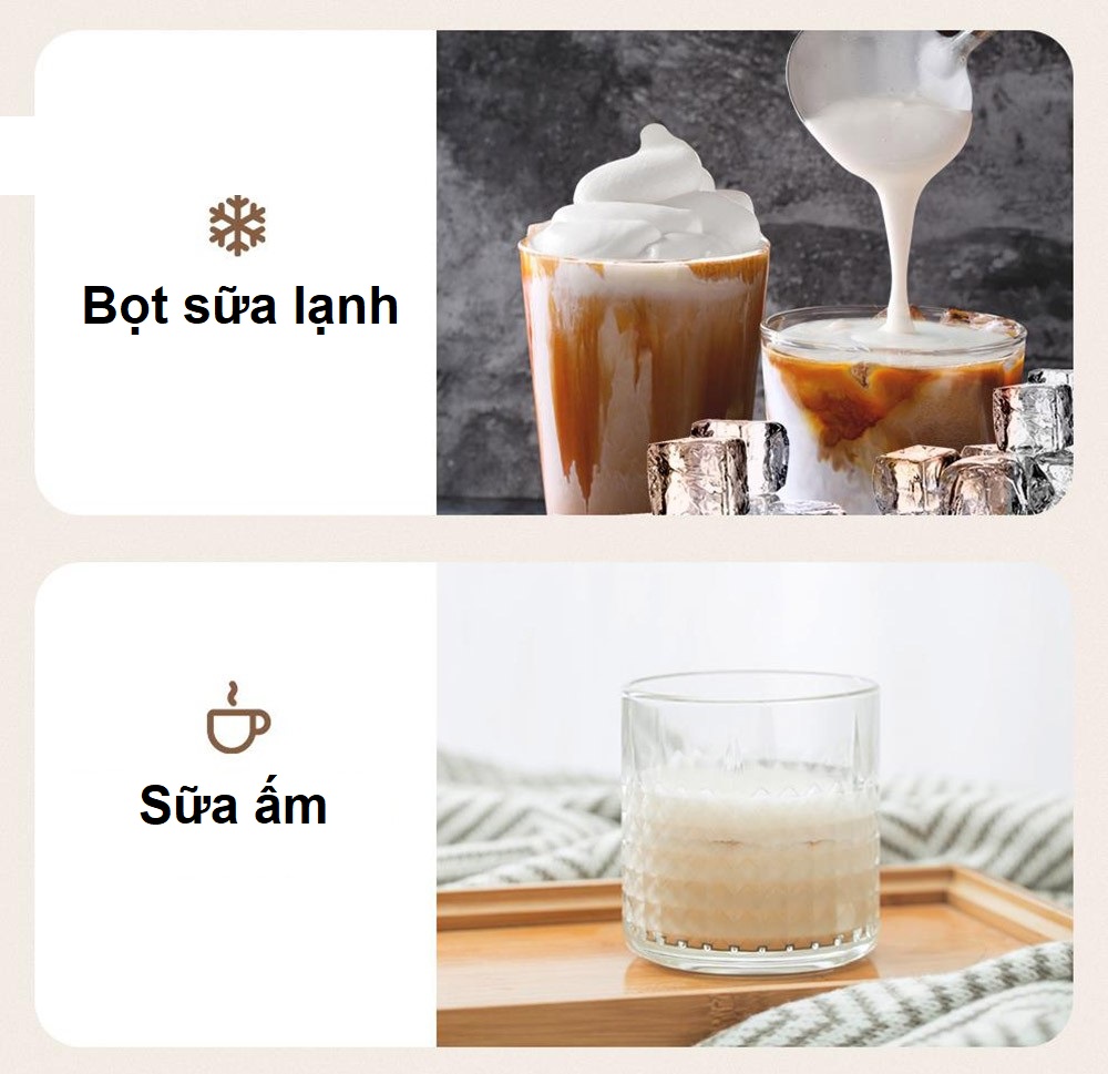 Máy Đánh Bọt Sữa Tự Động 4 Trong 1 (Nóng & Lạnh) cho Latte, Cappuccino, Socola Nóng