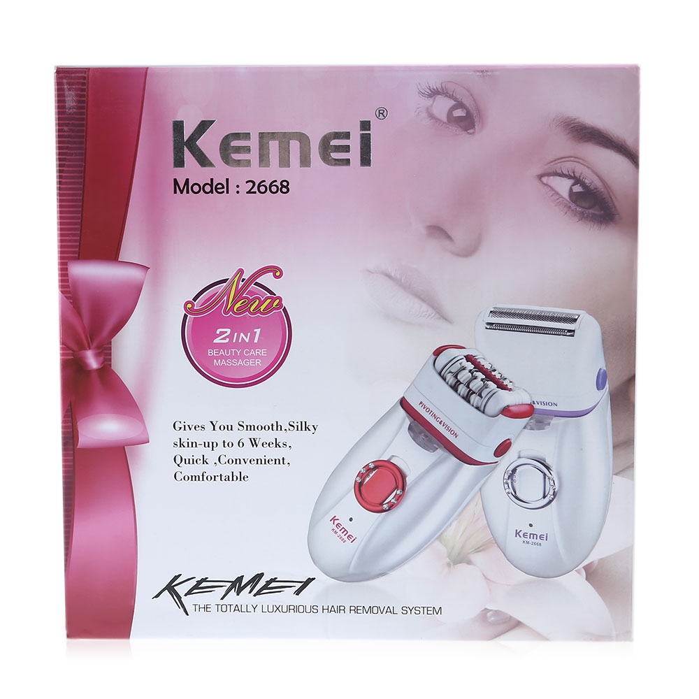 - Một chiếc máy tẩy lông đã không còn quá xa lạ với chị em phụ nữ nữa - Không chỉ giúp chị em có làn da mịn màn hơn mà còn giúp chị em trở nên tự tin khi diện những bộ trang phục quyến rủ Kemei-2668 là máy nhổ, cạo lông thông mình với 2 đầu thay thế linh hoạt