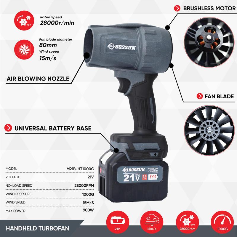 Máy Thổi Phản Lực Bosshun Turbofan Không Dây là một thiết bị đa năng và mạnh mẽ, được thiết kế để đáp ứng nhiều nhu cầu sử dụng trong cuộc sống hàng ngày. Với thiết kế nhỏ gọn và hiệu suất cao, máy thổi này là công cụ lý tưởng cho các công việc làm sạch và sấy khô.