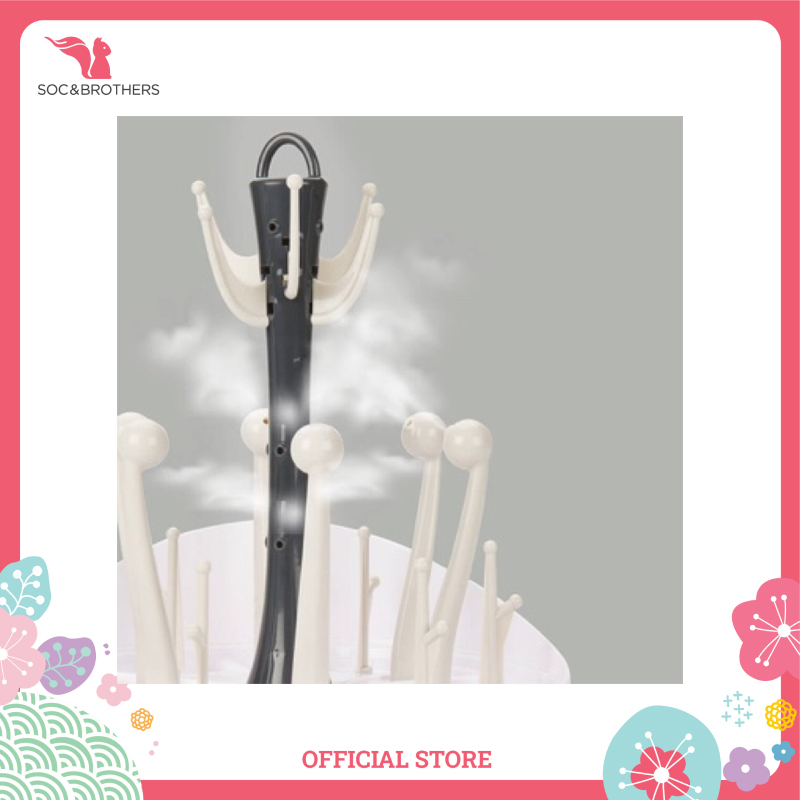 Máy tiệt trùng bình sữa Babymoov với 6 nhánh lớn cho 6 bình sữa, 6 nhánh vừa cho 6 nắp bình, 6 nhánh nhỏ cho núm vú hoặc vòng cổ bình.