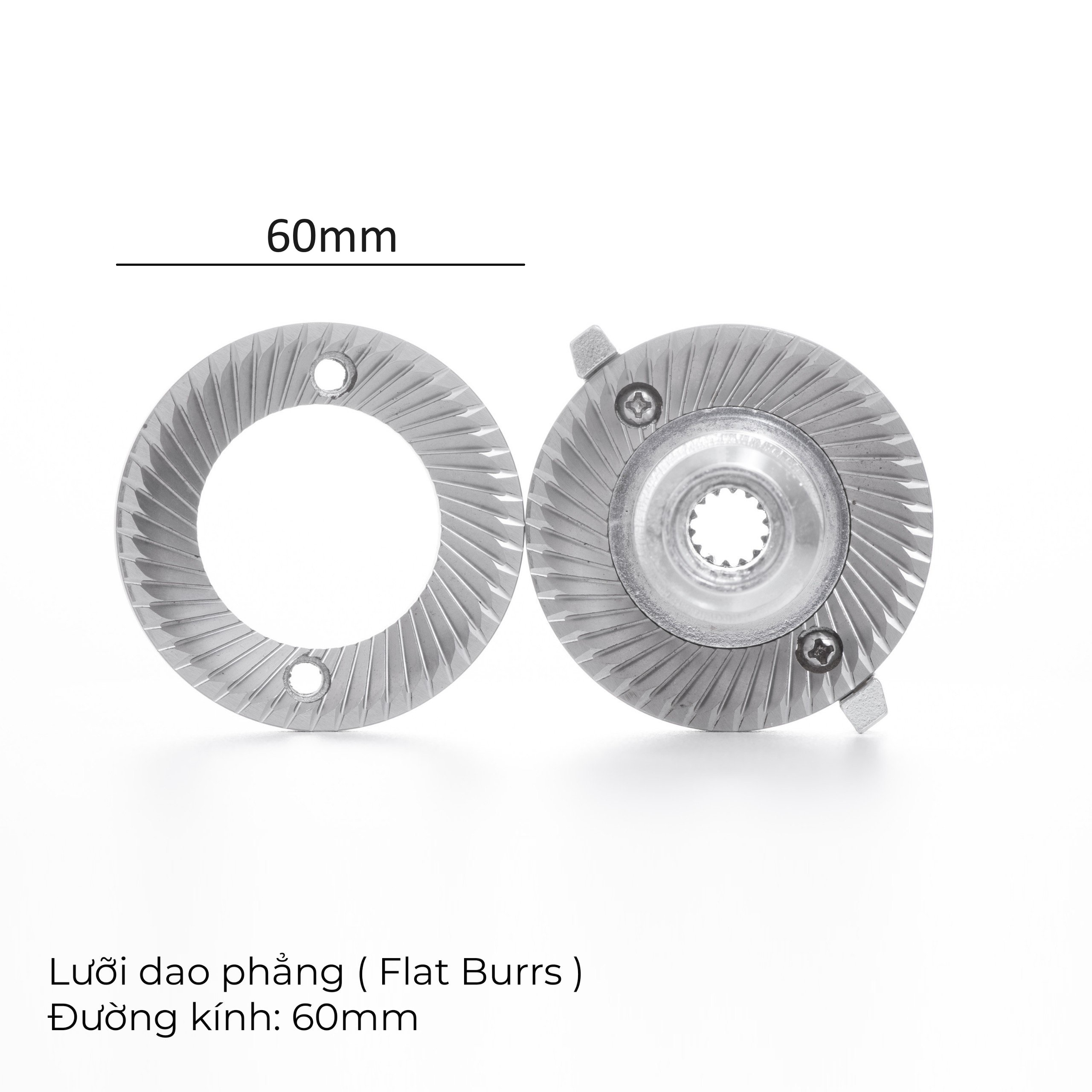 Dao xay 60mm dạng răng cưa với công nghệ khắc 3D: Chính xác hoàn hảo như nhau cho mỗi bộ dao xay xuất xưởng – và được mài sắc thêm sau khi khắc xong.
