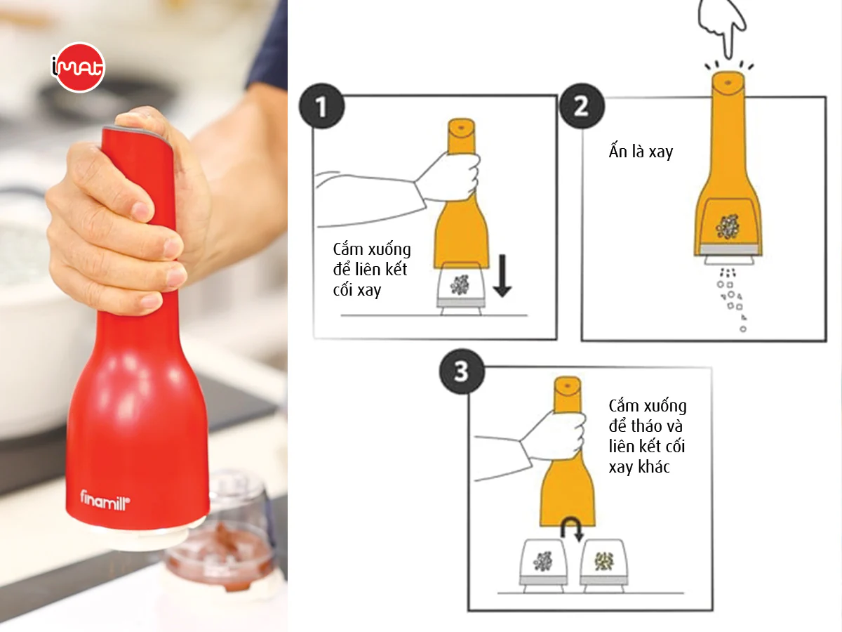 Máy xay gia vị FinaMill là thiết bị chuyên dụng để xay, nghiền nhỏ các loại gia vị khô như hạt tiêu, hạt mùi, ớt khô, muối hạt, và các loại gia vị đã được cắt nhỏ sấy khô. Sản phẩm có tính năng điều chỉnh độ thô mịn của gia vị, phù hợp cho nhiều mục đích sử dụng trong nấu ăn.