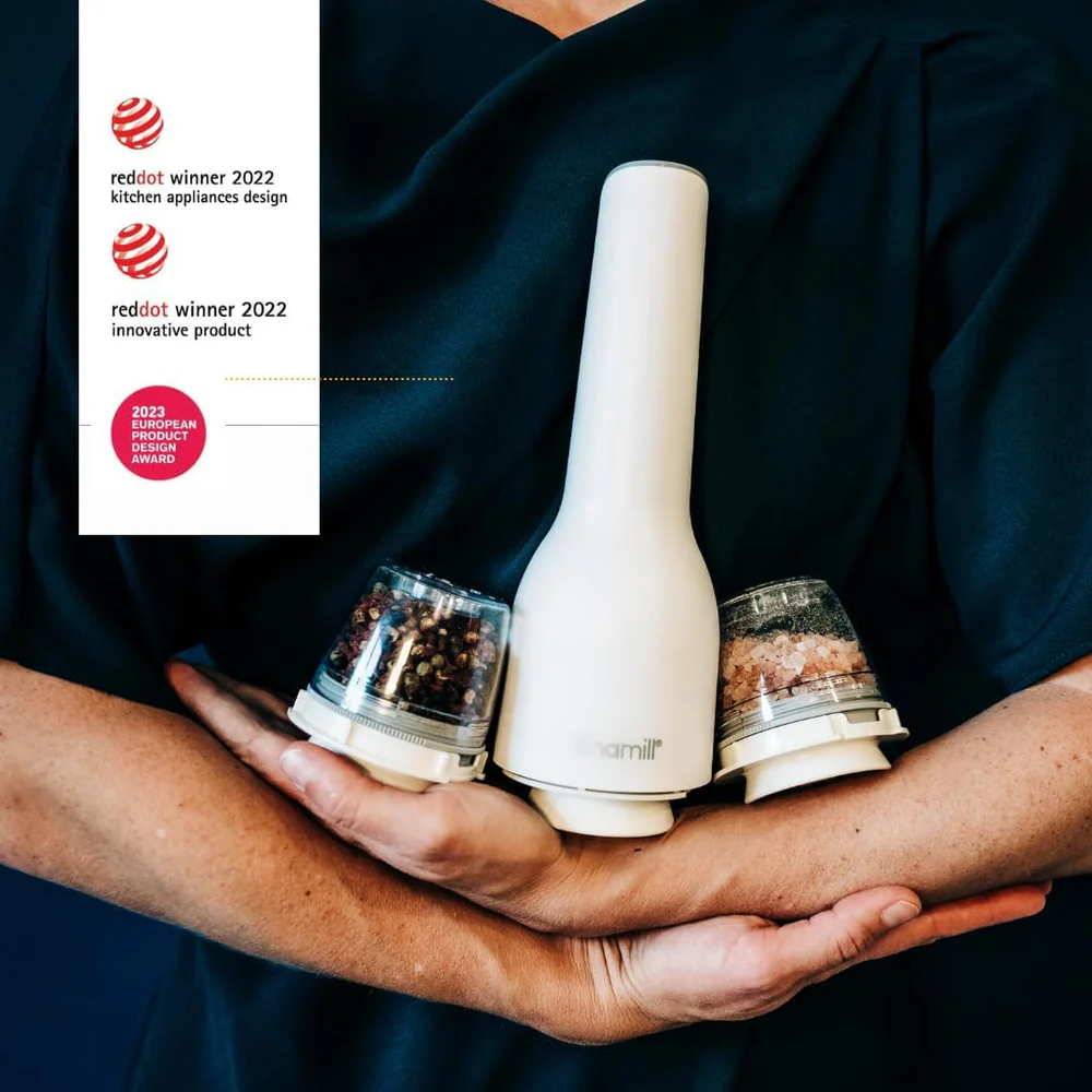 ✓ Máy xay đi kèm với tay cầm bằng nhựa có tích hợp pin sạc, hai cối xay gia vị riêng biệt, và dây sạc. Cơ chế xay bằng gốm mang đến độ bền cao và an toàn cho sức khỏe, trong khi đèn LED tích hợp giúp người dùng dễ dàng quan sát trong quá trình sử dụng.