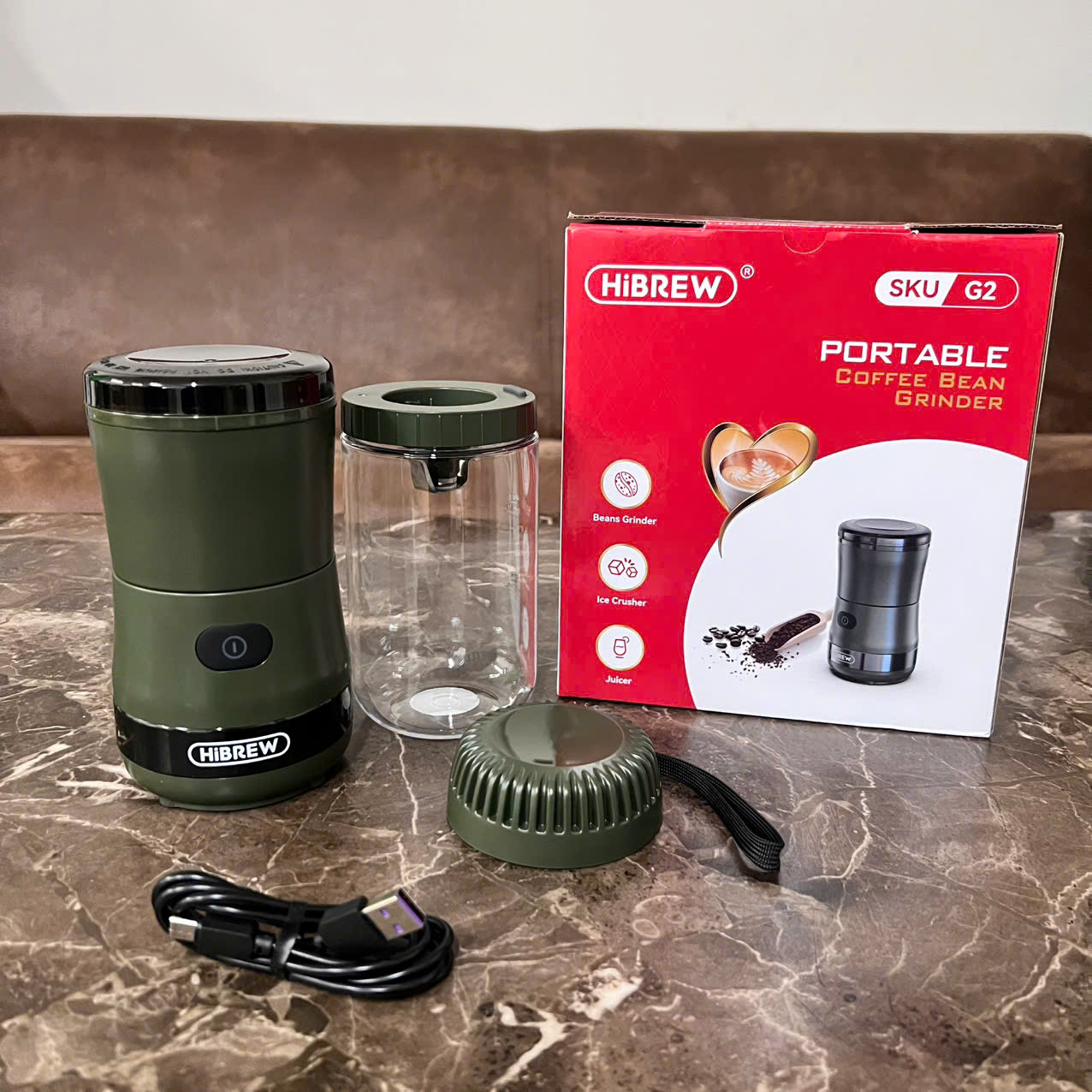- Máy xay hạt cà phê dùng pin cầm tay 3 trong 1 HiBREW G2 sở hữu thiết kế nhỏ gọn cùng cơ chế vận hành đơn giản, các bạn có thể mang theo khi đi leo núi, cắm trại hay đi du lịch cùng gia đình.