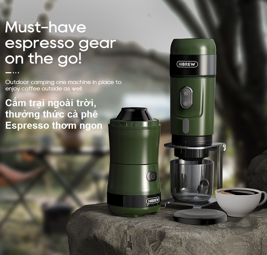 - Máy xay hạt cà phê dùng pin cầm tay 3 trong 1 HiBREW G2 sở hữu thiết kế nhỏ gọn cùng cơ chế vận hành đơn giản, các bạn có thể mang theo khi đi leo núi, cắm trại hay đi du lịch cùng gia đình.