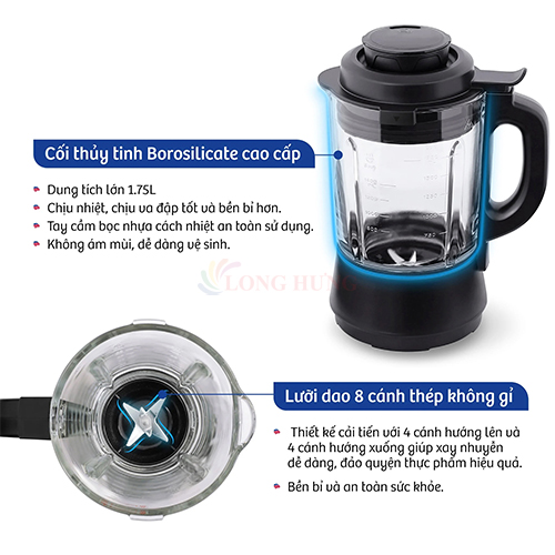 Máy xay nấu đa năng Bluestone BLB-6038 Công suất gia nhiệt: 800W Công suất xay: 1000W Cối thủy tinh Borosilicate cao cấp dung tích lớn : 1.75L Thân máy làm từ nhựa PP 7 chương