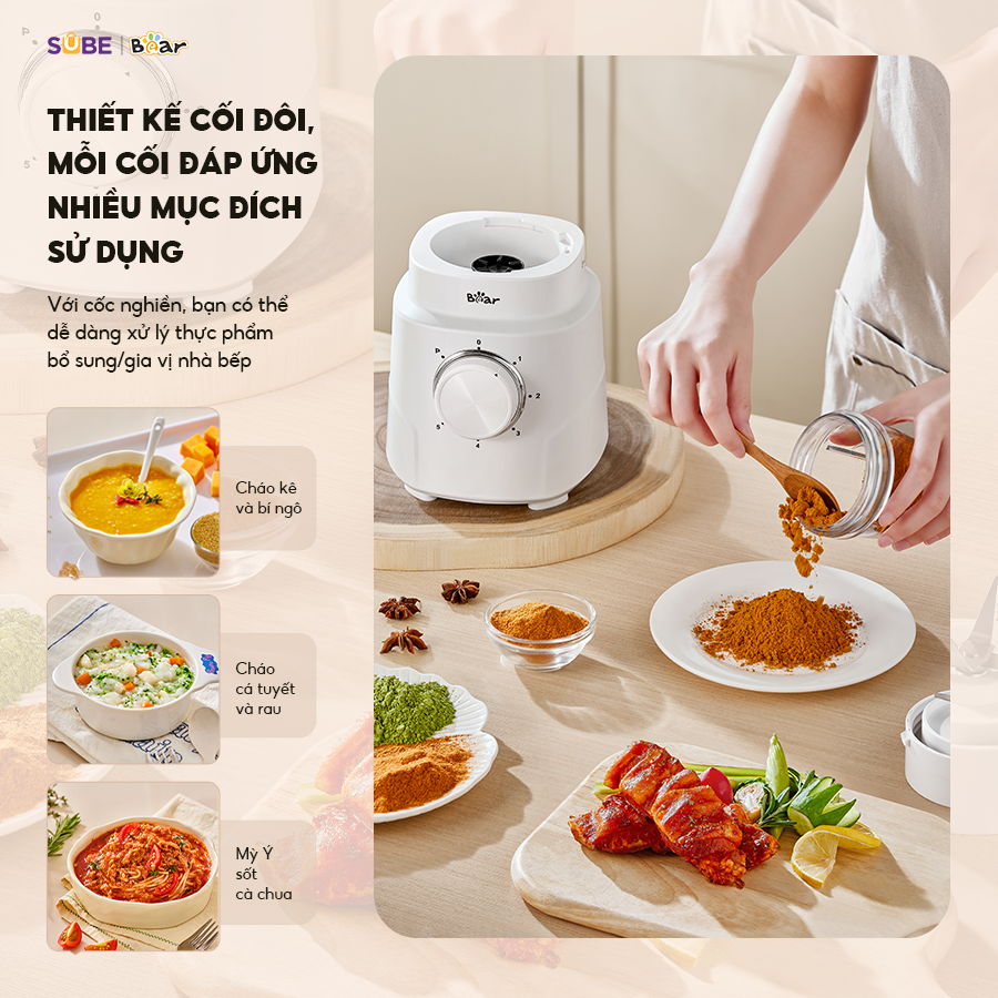 ✨Máy Xay Sinh Tố 1,5L Bear Tích Hợp Máy Xay Tỏi Ớt 2 Cối Xay Đa Năng Xay Đồ Ăn Healthy Eat Clean SB-MX15L - Hàng Chính Hãng