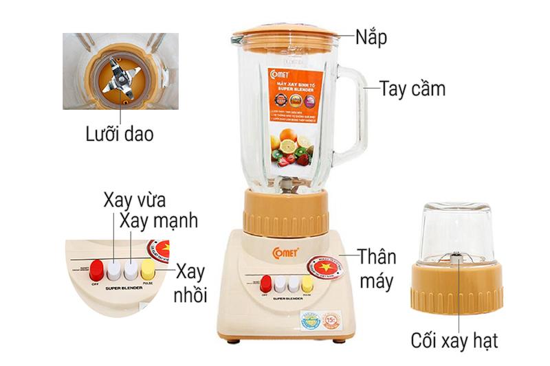 - Máy xay sinh tố Comet CM9955 có kiểu dáng hiện đại, màu sắc trẻ trung, giúp căn bếp trở nên tươi mới hơn bao giờ hết. Công suất mạnh mẽ -