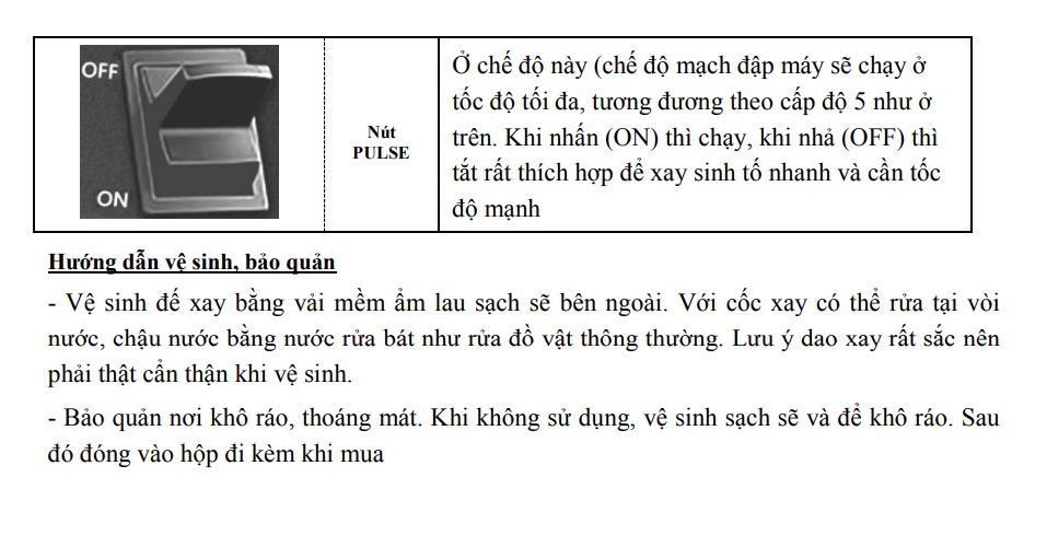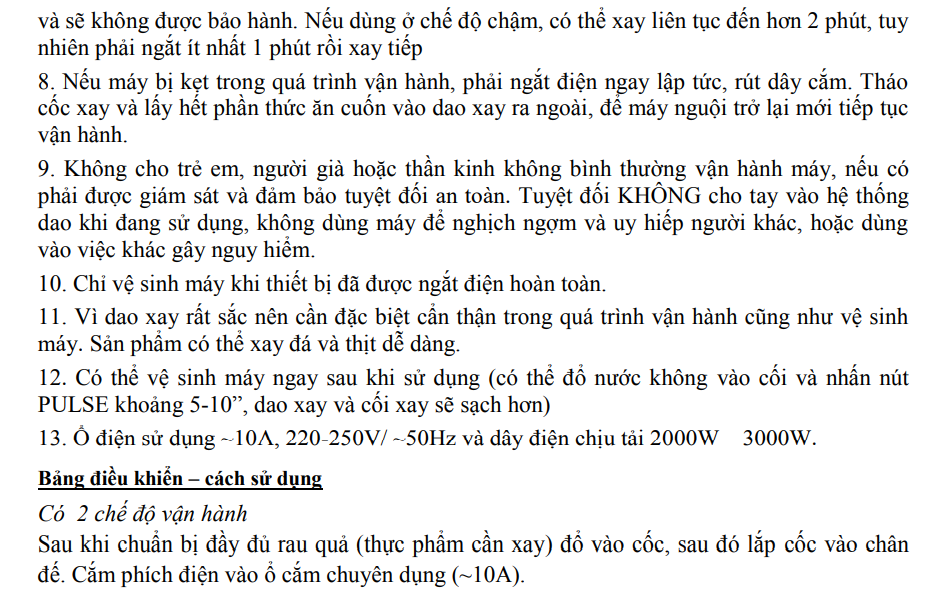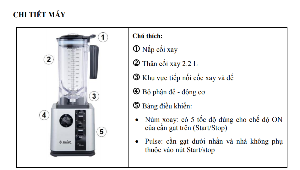 TÍNH NĂNG Dùng để xay hoa quả, xay đá, xay thịt thực phẩm dùng trong gia đình, nhà hàng, quán cà phê