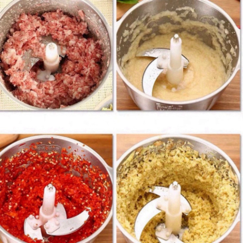 Cắt, xay nhuyễn đối với các loại hành tỏi, ớt , rau, thảo mộc, hành tây, các loại hạt...bằng tay chỉ với thao tác kéo dây cắt cực dễ và tiện Các mẹ làm đồ