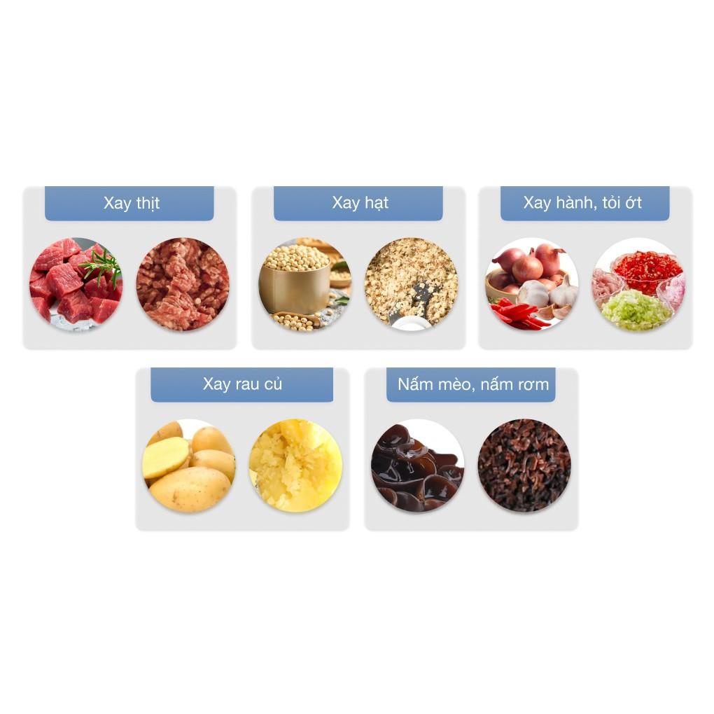 Hoạt động mạnh mẽ với công suất 450W kết hợp lưỡi dao bằng thép không gỉ - 2 lưỡi sắc bén, giúp xay nhuyễn, mịn nhiều loại thực phẩm như: thịt, cá, tôm, cua hay các loại gia vị: hành, tỏi, ớt, gừng,...
