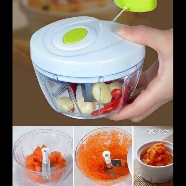 Cắt, xay nhuyễn đối với các loại hành tỏi, ớt , rau, thảo mộc, hành tây, các loại hạt...bằng tay chỉ với thao tác kéo dây cắt cực dễ và tiện Các mẹ làm đồ