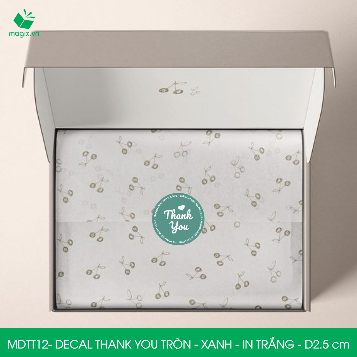 Decal - sticker Thank You là loại nhãn dán có nội dung "Cám ơn" được thiết kế theo hình tròn. Decal Thank You thường được dùng để trang trí bao bì, sản phẩm thời trang,