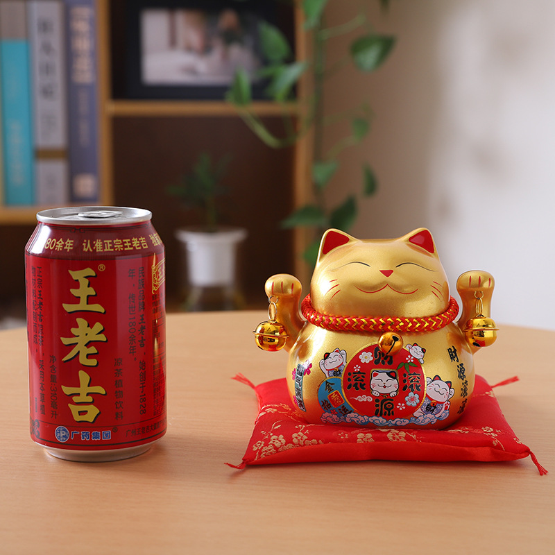 -Mèo thần tài lục lạc may mắn thu hút tài lộc , có khe để tiền , kèm đệm lót xinh xắn , đem nhiều may mắn đến cho gia chủ  -Xuất xứ : Trung