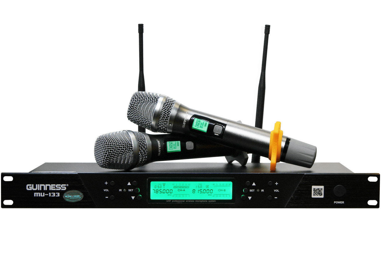 - Micro không dây GUINNESS MU-133 là sản phẩm được giới chuyên môn đánh giá là một chiếc micro đa năng có thể phù hợp với nhiều nhu cầu và mục đích sử dụng khác nhau như: chuyên dùng cho dàn karaoke gia đình, karaoke chuyên nghiệp hoặc cũng có thể dùng trong dàn loa hội trường, giảng đường, nhà thờ, sân khấu ca nhạc… mà vẫn đem lại trải nghiệm âm thanh tốt nhất cho người dùng.