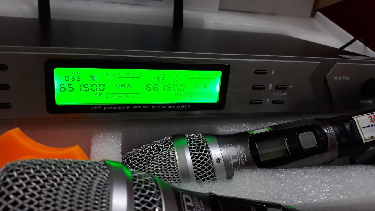 (HCM) Micro không dây TD Acoustic M8 Pro - Hàng Chính Hãng 2022   Âm thanh TD Acoustic chính hãng cam kết không bán hàng giả , nếu quý khách phát hiện hàng giả shop sẽ gửi lại tiền và tặng luôn sản phẩm quý khách đã mua. Xin cảm ơn quý khác hàng đã tin tưởng và ủng hộ Âm thanh TD Acoustic chính hãng ]  Micro không dây TD M8 Pro là model đầu tiên được TD sản xuất và giới thiệu tới người tiêu dùng, tiếp nối M8-Pro là các model M10- Plus, M12 và M18 có các mức giá cao hơn. với ưu điểm lớn nhất M8-Pro có mức giá cực kì hợp lý nhưng chất lượng đem lại vượt trội hơn tất cả các sản phẩm trong tầm giá. Sản phẩm chính hãng, chế độ bảo hành tốt, M8-Pro đã bán cháy hàng ngay ngày đầu mở bán. với thiết kế phổ thông mặt nhôm phay xước màu ghi hiện đại, phù hợp cho mọi không gian và dễ dàng phối ghép với các bộ dàn âm thanh.  M8-Pro sử dụng 2 râu thu phát sóng, là dòng mic chuyên dùng cho gia đình và các show