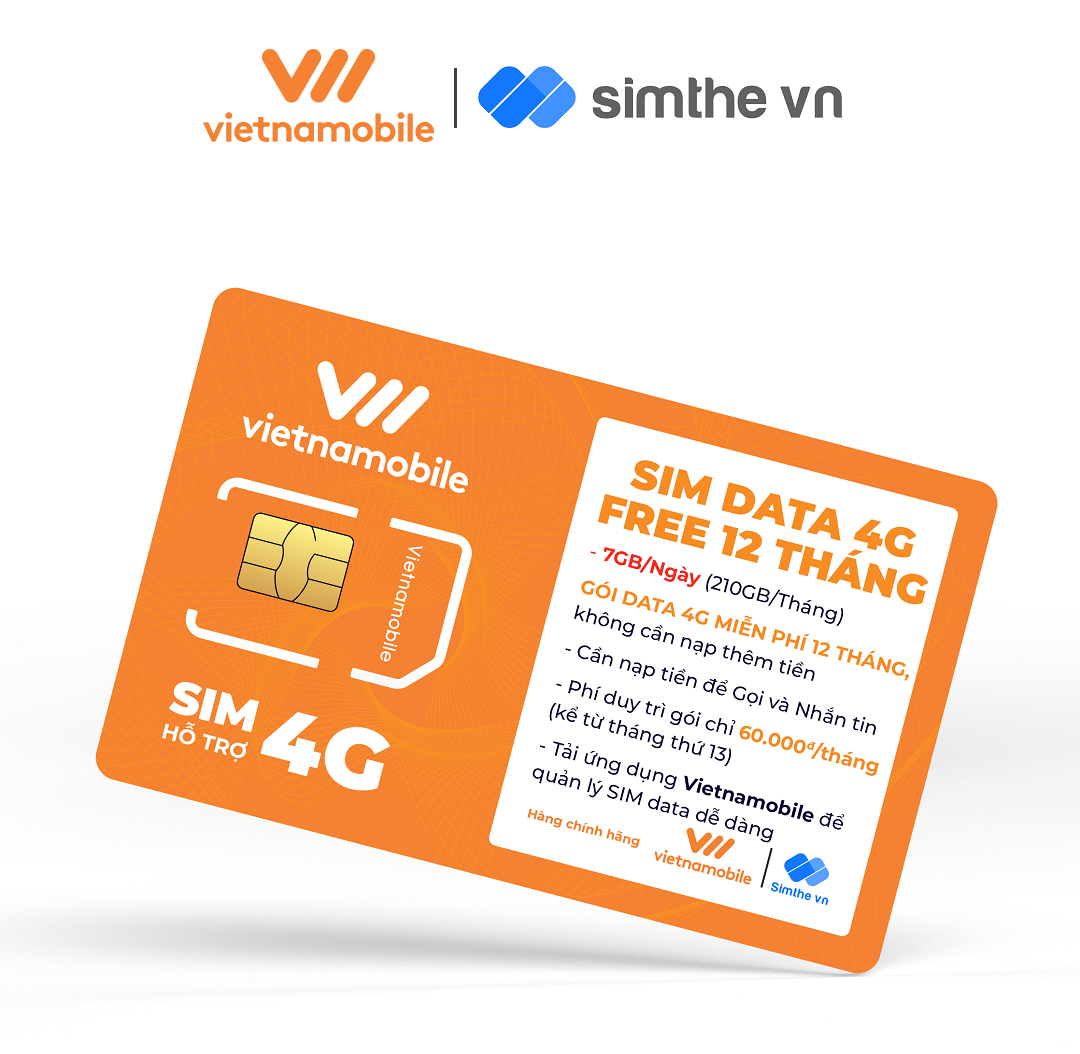 - Phí duy trì từ tháng thứ 13 trở đi là 60.000đ/tháng. Với ưu thế sóng khỏe, dung lượng cao lên đến 7GB/ngày cùng nhiều ưu đãi hấp dẫn, SIM MAX DATA 12 tháng là loại SIM DATA có mức giá cạnh tranh nhất thị trường và nổi bật hơn so với các đối thủ trong cùng phân khúc, đang chiếm lĩnh tình cảm yêu mến của người tiêu dùng trong phân khúc SIM DATA tốc độ cao trọn gói 1 năm không phải nạp tiền. Sim Data không phải là một sản phẩm mới. Sản phẩm này đã có mặt trên thị trường từ rất lâu. Tuy nhiên, nhu cầu của người dùng ngày càng cao kéo theo các gói sản phẩm sim Data phải liên tục cập nhật và nâng cấp. Nếu như trước đây, những gói Sim Data 4GB, 5GB đã là đủ dùng thì trong thời đại mới hạn mức các gói cần gia tăng thêm. Nhà mạng Vietnamobile kết hợp cùng trung tâm sim so dep Sim Thẻ cho ra đời các dòng sim Max Data gói 6 & 12 tháng với nhiều ưu đãi. Đây được xem là lựa chọn hoàn hảo dành cho người dùng di động trong thời đại mới. *HƯỚNG DẪN SỬ DỤNG SIM DATA TRỌN GÓI 12 THÁNG CỦA VNM: