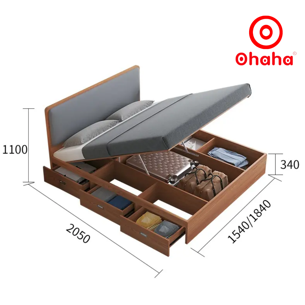 **Tặng kèm 1 Tab đầu giường** - Thương hiệu: OHAHA - Xuất xứ sản xuất: Việt Nam - Chất liệu: Gỗ MDF lõi xanh phủ Melamine 2 mặt chống ẩm. - Màu sắc: Như hình hoặc
