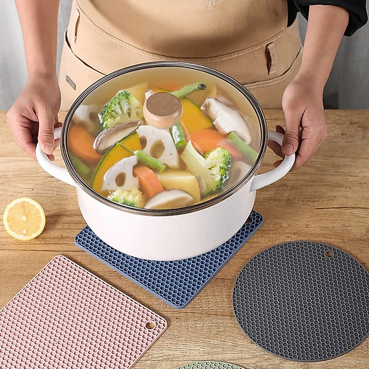 Miếng lót nồi cách nhiệt silicon, chống nóng, dễ dàng vệ sinh, thiết kế bề mặt tổ ong chống trượt