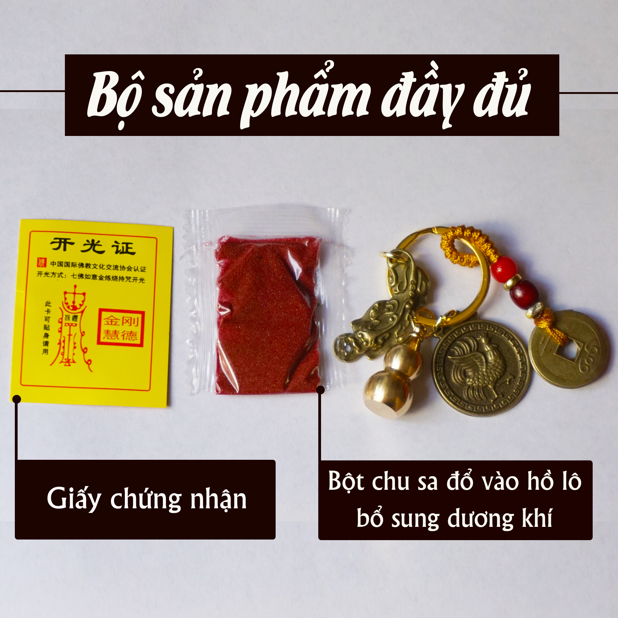 CÔNG DỤNG Tiền xu Ngũ Đế: Giúp tăng cường vượng khí, phát triển tài lộc Hồ lô phong thủy và bột chu sa: Xua đuổi điều xui xẻo, tăng sức khỏe, hóa giải bệnh tật Tỳ hươu ngậm tiền: Giúp gia chủ phát tài, phát lộc cho việc kinh doanh, buôn bán trôi chảy. MẶT SAU đồng tiền là hình bát quái xua đuổi tà khí