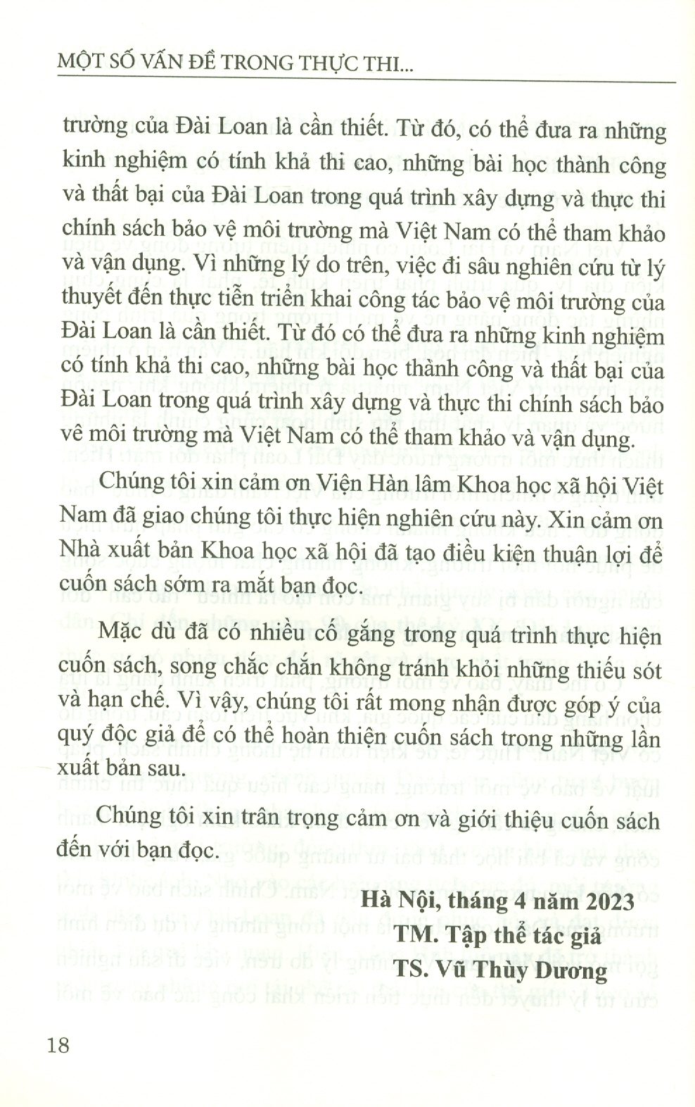 ✨Một Số Vấn Đề Trong Thực Thi Chính Sách Bảo Vệ Môi Trường Của Đài Loan Và Những Gợi Mở Cho Việt Nam - TS. Vũ Thùy Dương (Chủ biên) - Viện Hàn Lâm Khoa Học Xã Hội Việt Nam