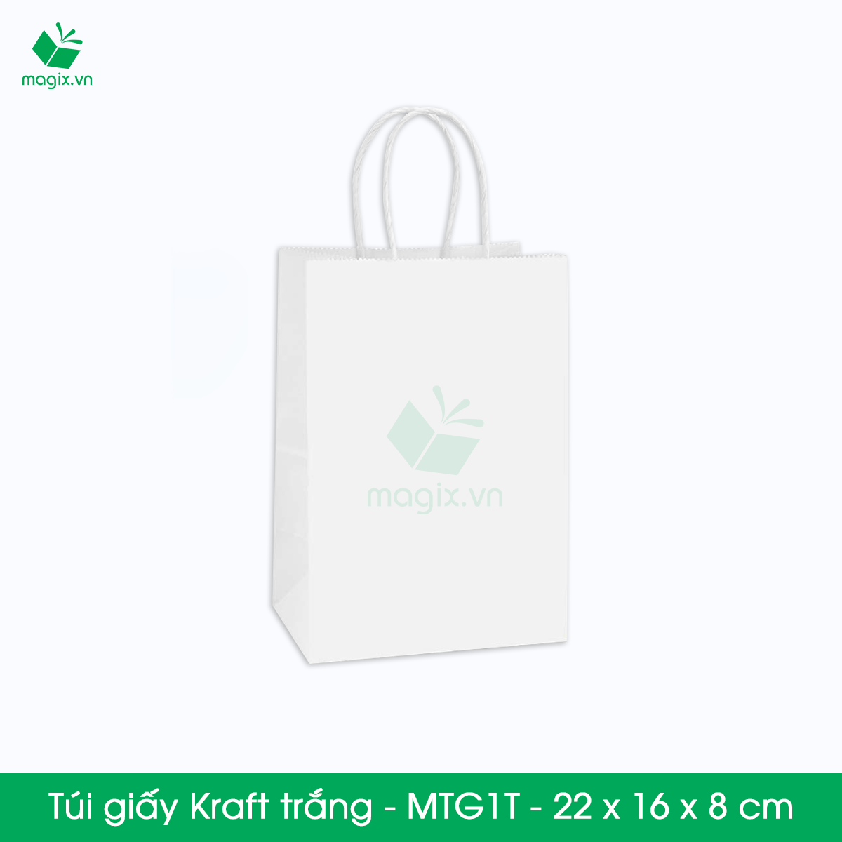 Túi Giấy Kraft Trắng Sản phẩm được làm bằng giấy kraft trắng, bền về cơ học, dai, chống thấm tốt, thân thiện môi trường do có khả năng phân hủy sinh học nên được tái sinh