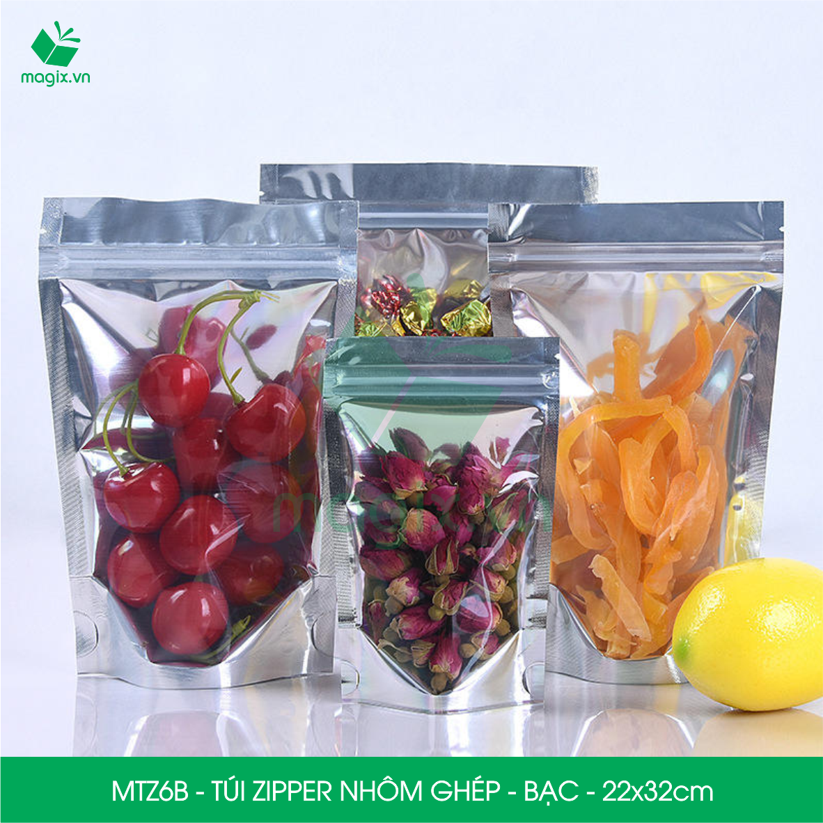 ✨MTZ6B - 22x32cm - Combo 50 Túi Zipper Bạc đáy đứng, một mặt trong