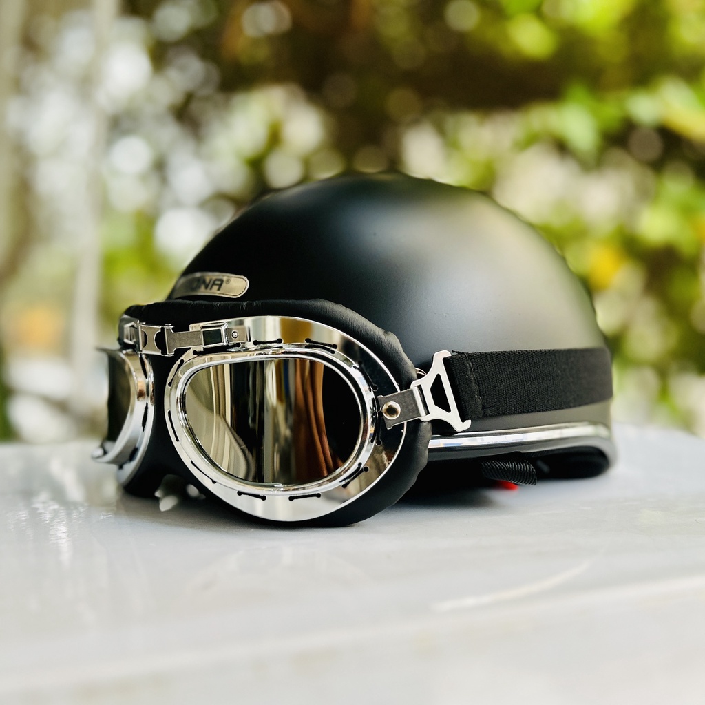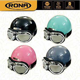 Mũ bảo hiểm nửa đầu Rona haly viền bạc kèm kính phi công bạc cho nam và nữ đi xe máy