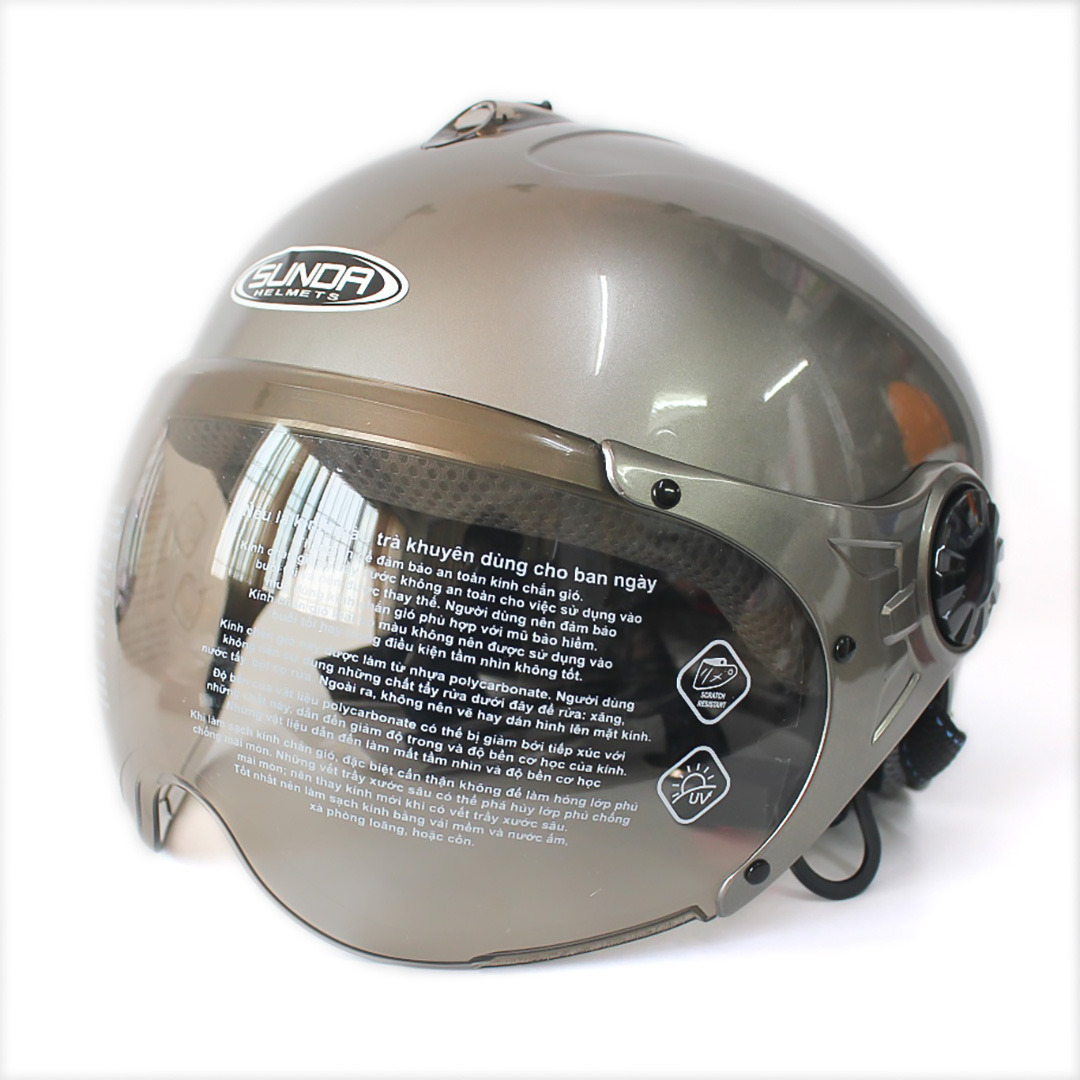 Mũ bảo hiểm nửa đầu có kính Sunda 180B trơn là phụ kiện không thể thiếu khi đi xe mô tô, xe máy, mang lại sự an toàn và phong cách thời trang cho người sử