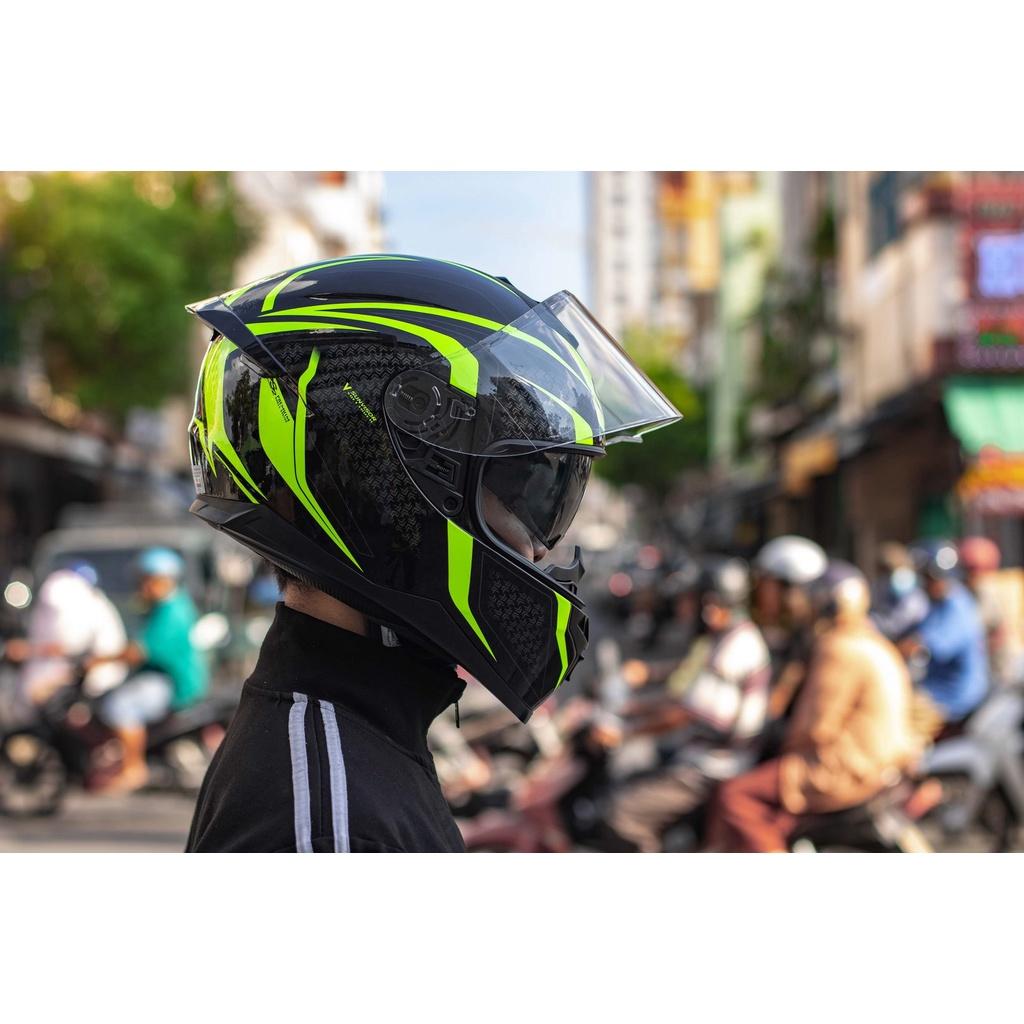 Mũ bảo hiểm Fullface Yohe 967 Plus được đánh giá cao bởi đạt được sự cân bằng giữa chất lượng – giá bán. Mũ đạt chuẩn ECE-22.05 của thị trường Châu Âu với thiết kế góc cạnh cùng các mẫu tem ấn tượng. Phần đệm lót cực kì thoải mái và mềm mại, dễ chịu, thích hợp cho cả người dùng lần đầu làm quen với dòng mũ fullface.