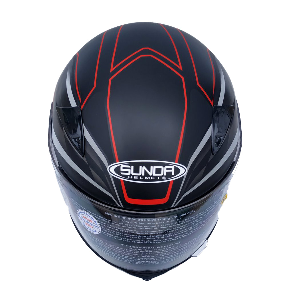 Mũ bảo hiểm fullface Sunda 2000c đen nhám tem đỏ: Nón được thiết kế nhỏ gọn, lòng nón sâu, phù hợp cho người có vòng đầu từ 55-59 cm - đây là size phổ biến của người VN trưởng thành Sunda 2000c là sản phẩm có độ bền cao, chịu được va đập tốt, thiết kế thời trang thông minh, bảo vệ an toàn trên mỗi hành trình của bạn. Vỏ mũ: Sản phẩm mũ bảo hiểm Sunda cam kết luôn sử dụng nhựa ABS nguyên sinh 100% được nhập khẩu từ các nhà cung ứng uy tín như Hàn Quốc, Malaysia, Thái, Nhật chịu được độ va đập cao. Hệ thống thông gió trên thân mũ:  giúp tản nhiệt. Với thiết kế thông minh, phía trước mũ có 2 lỗ thông gió hình tam giác có thể dễ dàng đóng/ mở bằng cách trượt nhẹ, giúp người sử dụng luôn cảm thấy thông thoáng, đồng thời ngăn chặn hoàn toàn nước mưa khi thay đổi thời tiết. Bộ phận thông gió dưới cằm: có hình dạng hình tam giác có thể được mở bằng cách đẩy lên và có thể đóng bằng cách đẩy nắp xuống, giúp không khí lưu thông vào bên trong mũ. Lưới dưới cằm: vừa giúp tạo cảm giác thông thoáng vừa có tác dụng ngăn chặn côn trùng. Kính: được làm từ vật liệu chất lượng cao, đã qua xử lý đặc biệt, cho góc quan sát rộng, hình ảnh rõ nét, trung thực, không bị chói đèn, có khả năng chống tia UV400, chắn gió, chống xước. Kính được thiết kế tháo lắp dễ dàng bằng tay không, không cần sử dụng dụng cụ hỗ trợ. Khóa mũ: sử dụng khóa E8 dễ đóng, mở, chịu được lực kéo mạnh, chắc chắn,  đảm bảo an toàn tốt nhất cho người sử dụng. Dây mũ: dài, chắc chắn, có thể điều chỉnh linh hoạt phù hợp với nhu cầu của người sử dụng. Vải lót cao cấp được xử lý kháng khuẩn, thấm hút tốt, mau khô, giúp hạn chế nguy cơ mắc các bệnh về tóc và da đầu. Mút xốp: là bộ phận quan trọng của nón, được thiết kế để có thể hấp thụ lực khi xảy ra tai nạn. Do đó Sunda luôn cam kết sử dụng xốp nguyên sinh để đảm bảo chất lượng tốt nhất cho sự an toàn của người sử dụng. Mũ thiết kế nhiều lỗ thông gió phía trước và sau mũ, các lỗ này có thể đóng mở được, đảm bảo bạn luôn cảm thấy thoải mái và dễ chịu khi sử dụng.   *** Hướng dẫn xác định cỡ mũ phù hợp: Vòng 1 sợi dây quanh đầu, phía trên lông mày và tai khoảng 2cm. Xiết sợi dây sao cho ôm vừa đủ thoải mái lấy đầu và ghi lại số đo đó. Lặp lại như vậy để tìm được số đo mà bạn thấy đầu dễ chịu nhất. Đó chính là size đầu của bạn. So sánh với kích thước mũ để tìm size mũ phù hợp.