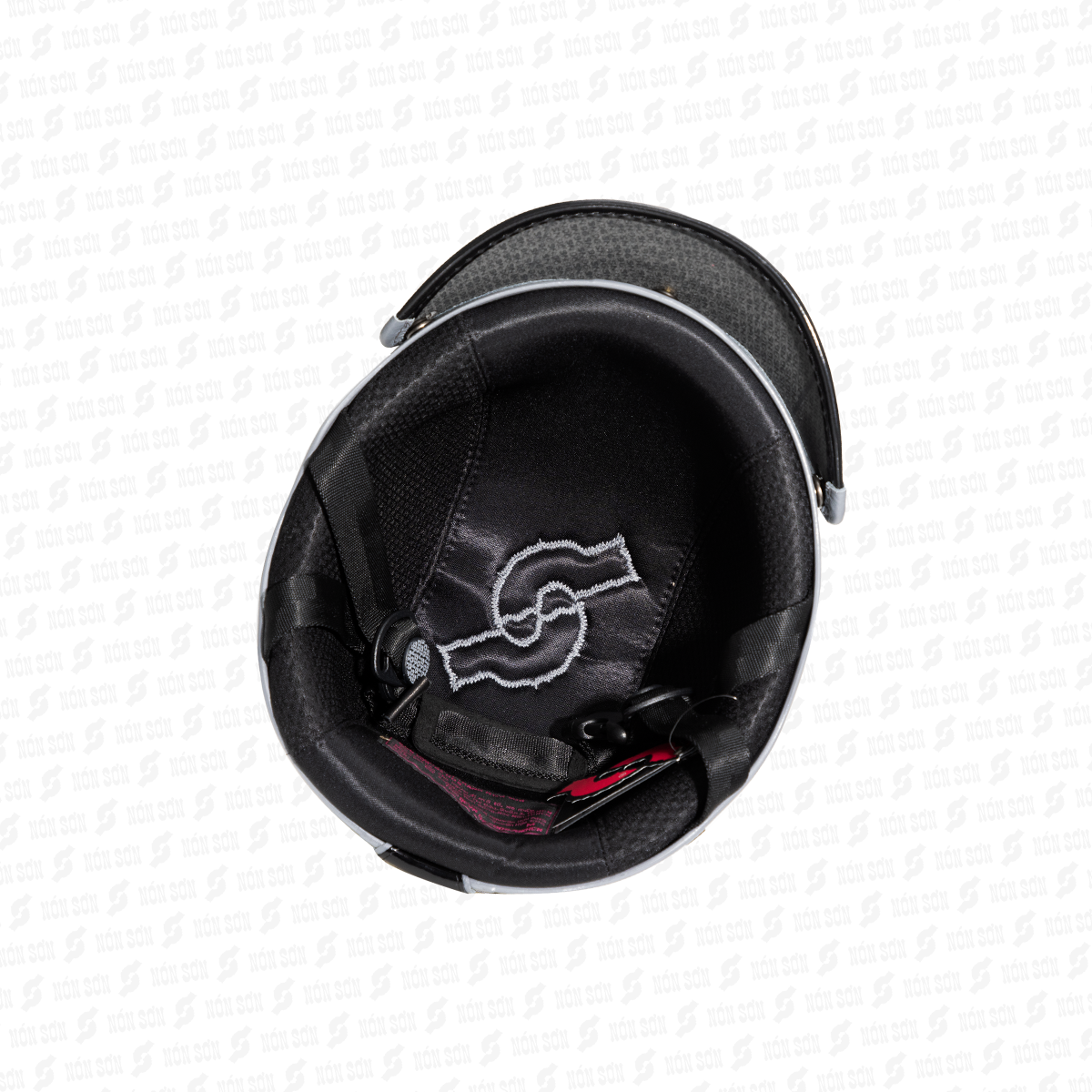• Phần logo NÓN SƠN được gắn trên vỏ nón bảo hiểm Nón Sơn được làm từ da thật.