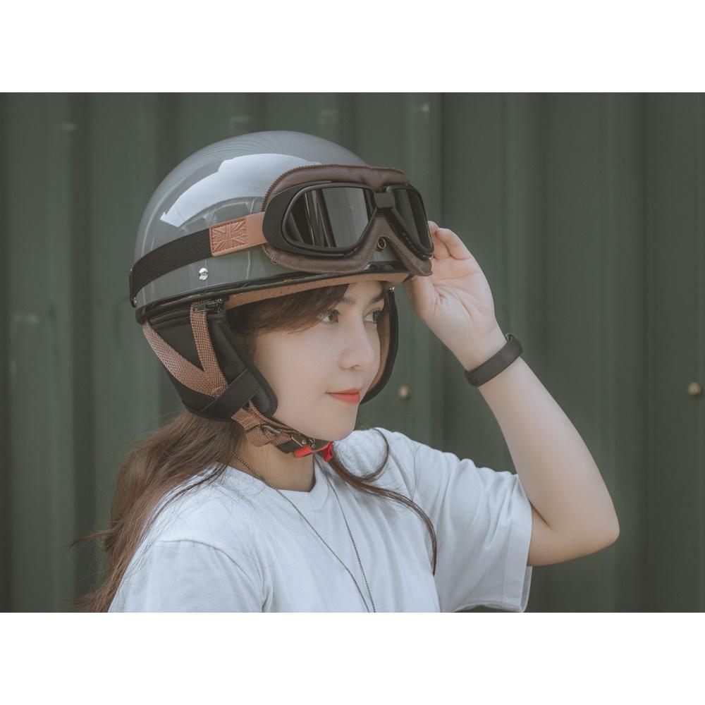 Mũ bảo hiểm nửa đầu freesize Rona hali viền bạc kèm kính phi công bạc Mũ bảo hiểm nửa đầu Rona haly viền bạc kèm kính phi công bạc cho nam và nữ đi xe
