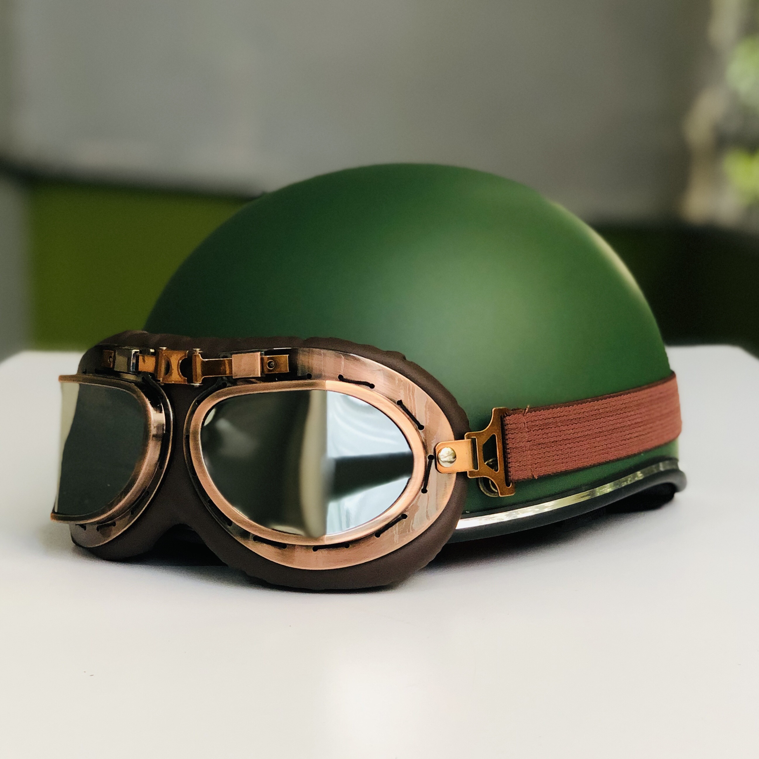 MŨ BẢO HIỂM XE MÁY NỬA ĐẦU RONA LUXURY KÈM KÍNH PHI CÔNG VIỀN ĐỒNG - TẶNG TAI MÈO - Thương hiệu: RONA - Do công ty TNHH SX TM ĐT ANH DUY SỞ HỮU