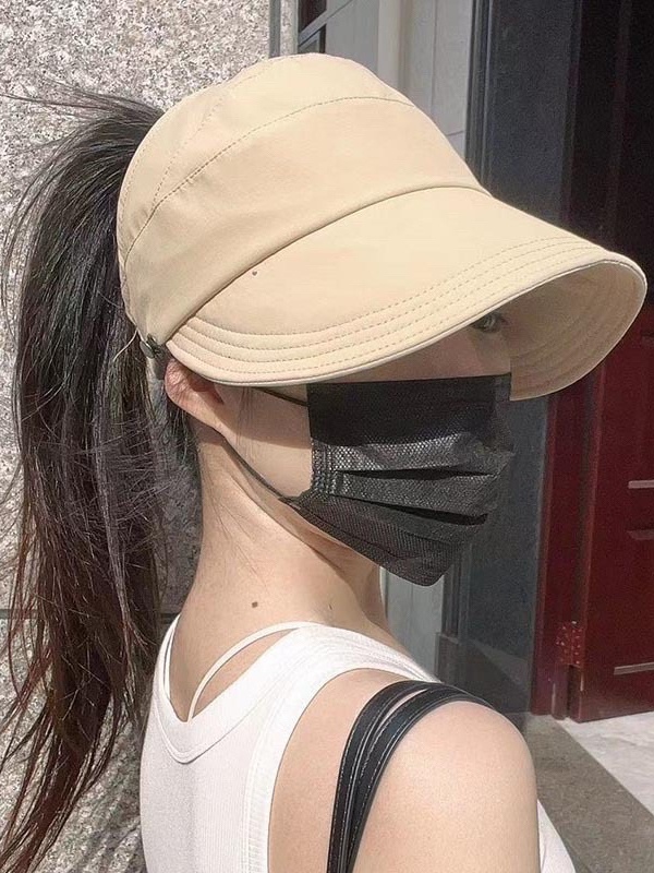 -Mũ chống nắng nửa đầu Hàn Quốc, nón vành rộng có nút đeo khẩu trang, mũ chống nắng buộc tóc đuôi ngựa -Xuất xứ :    Trung Quốc   --Chất liệu   :   Vải Acrylic