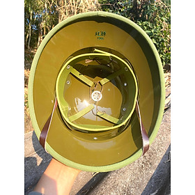 Mũ cối chuẩn 1966 Chịu lực chịu va đập cực tốt chống nước chống phai màu Lòng vàng Bọc Vải chuẩn đẹp Lỗ thông hơi,khuy làm bằng nhôm quai làm bằng da bò Cách điện,