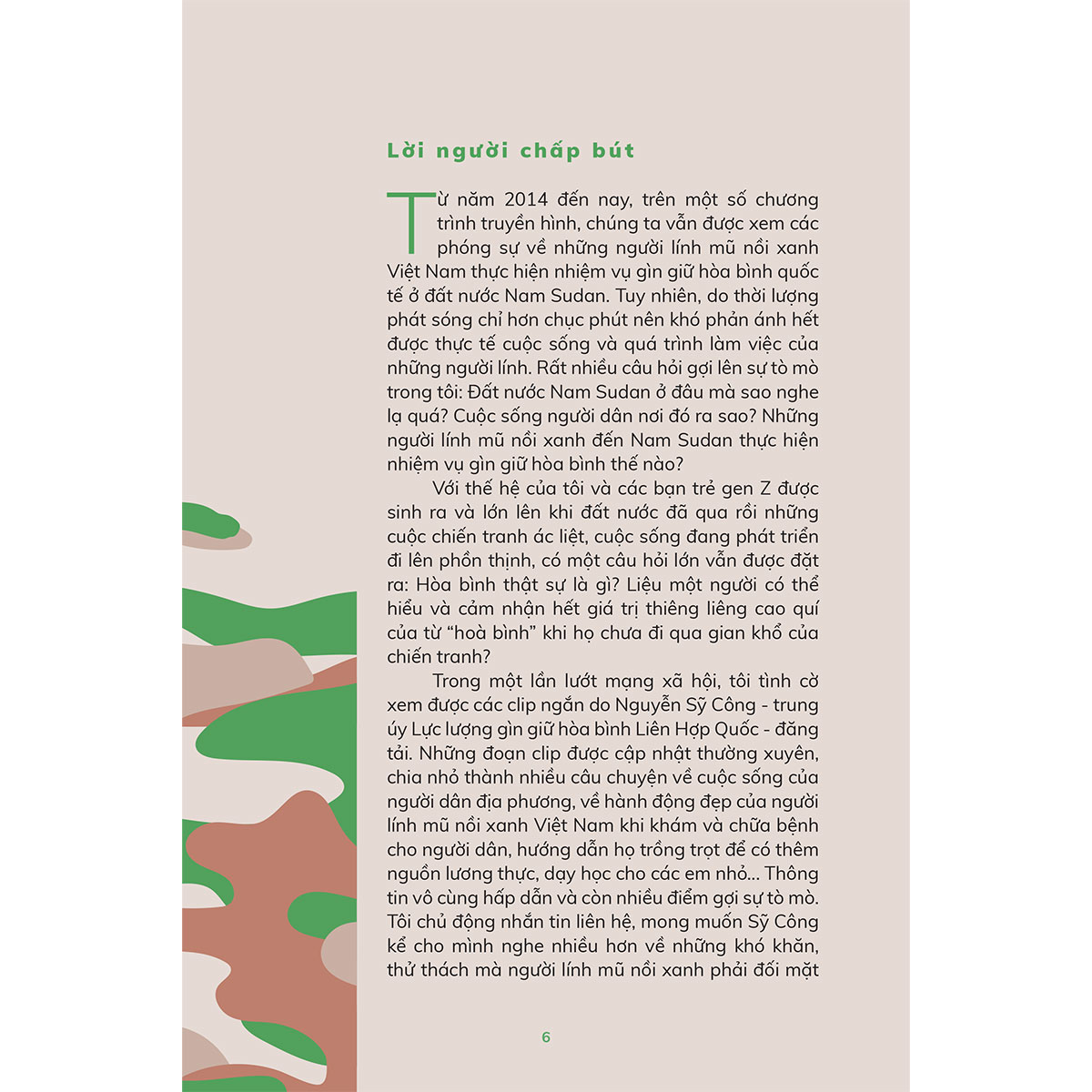 Hình ảnh người lính mũ nồi xanh Việt Nam thực hiện nhiệm vụ quốc tế trở nên quen thuộc trong những năm qua. Thế nhưng vẫn còn đó nhiều câu hỏi: Đất nước những người lính đến làm nhiệm vụ ở nơi đâu, sao tên nghe lạ quá? Cuộc sống người dân nơi đó ra sao? Những người lính thực hiện nhiệm vụ gìn giữ hoà bình như thế nào?