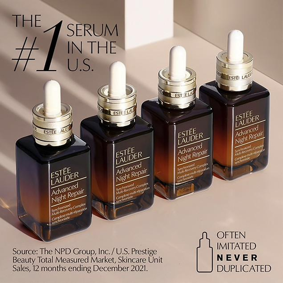 • Serum Advanced Night Repair Synchronized Multi-Recovery Complex làm mờ các đường nhăn và nếp nhăn, chống lại các dấu hiệu lão hóa. Siêu dưỡng ẩm, công thức làm đầy đặn bề mặt với độ ẩm, làm mịn bề mặt da. Nạp lại vẻ rạng rỡ cho bạn, huyết thanh giúp làm sáng da, để lại tông màu và kết cấu đều hơn. Hơn thế nữa, công thức bảo vệ da chống lại các tác nhân môi trường hàng ngày của cuộc sống, bao gồm ô nhiễm và ánh sáng xanh.