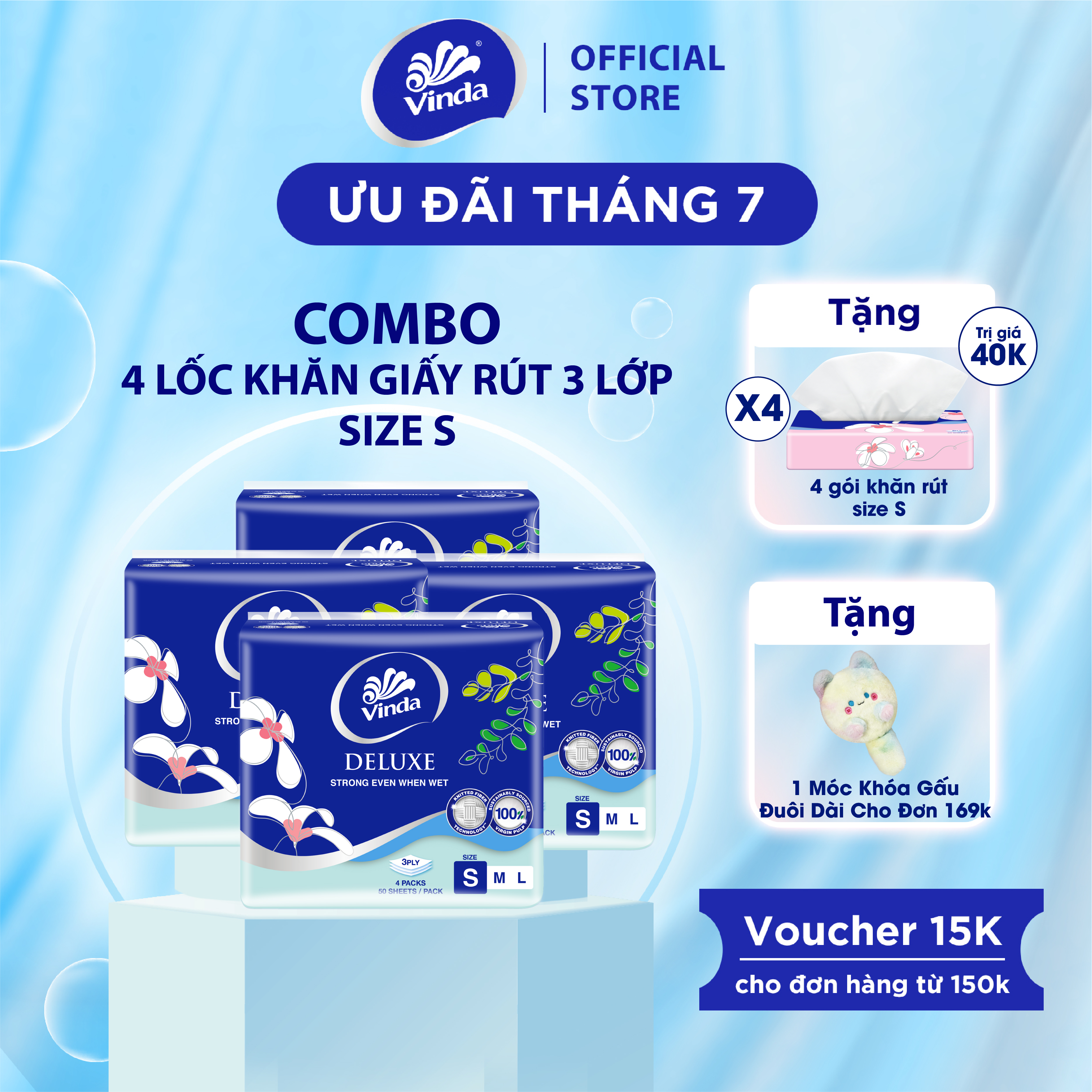 Khăn giấy rút cao cấp Vinda Deluxe Size S