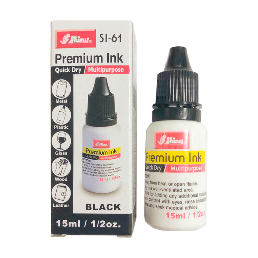 Mực con dấu stamp chuyên dụng Shiny đóng được trên mọi bề mặt vật liệu trơn (không bóng) hoặc nhám. Thích hợp cho các con dấu văn phòng, cơ quan, xí nghiệử dụng phổ biến
