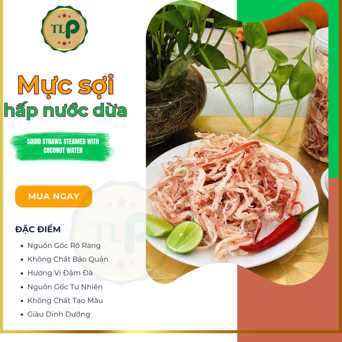Thành phần: 90% vi cá đuối khô, 10% gia vị (đường, muối, ớt, chất điều vị mononatri L-glutamat 621, tiêu) Hạn sử dụng: 12 tháng kể từ ngày sản xuất Hướng dẫn sử dụng: Sử