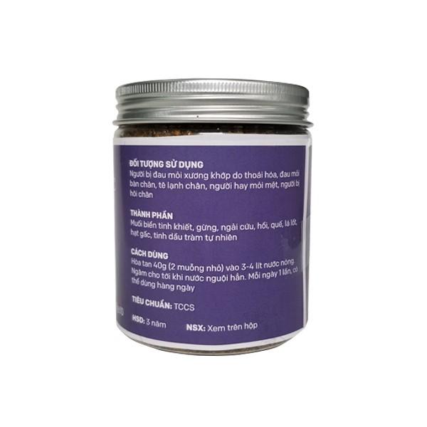 - Thành phần: 100% Thảo Mộc Tự Nhiên truyền thống của Việt Nam gồm gừng, ngải cứu, hồi, quế, lá lốt, hạt gấc, tinh dầu Tràm tự nhiên và muối ngâm chân.