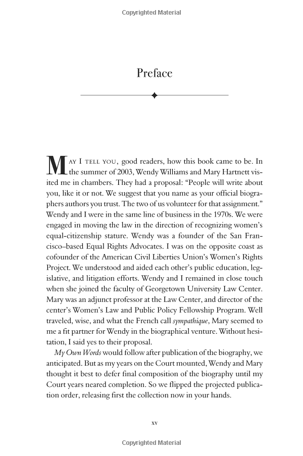 My Own Words The New York Times bestselling book from Supreme Court Justice Ruth Bader Ginsburg-"a comprehensive look inside her brilliantly analytical, entertainingly wry mind, revealing the fascinating life of one of our generation's most
