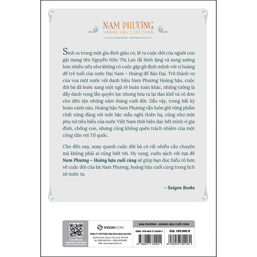 Nam Phương - Hoàng Hậu Cuối Cùng------------Nam Phương - Hoàng hậu cuối cùng là cuốn sách tập hợp những câu chuyện về Hoàng hậu Nam Phương, người con gái tài sắc vẹn toàn của đất Gò Công - Tiền Giang,...