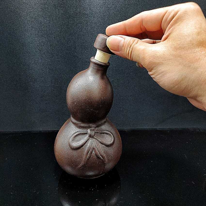 Nậm Rượu Gốm 500ML cao cấp mẫu hồ lô nghiêng màu nâu đất Nậm Đựng Rượu cho giới sành tửu – Nậm Rượu Đẹp (L4) Terracotta Bottle 500ML - Lean Gourd shape – Brown color