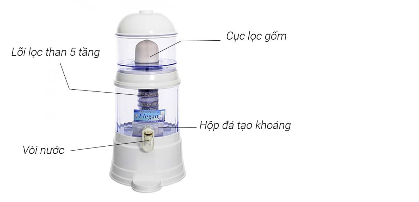 Bộ lọc nước uống trực tiếp, còn lưu giữ khoáng chất Loại bỏ 99,99% các vi khuẩn có hại, clo và các chất cặn bám Không dùng điện, không nước thải Tiêu chuẩn nước đầu