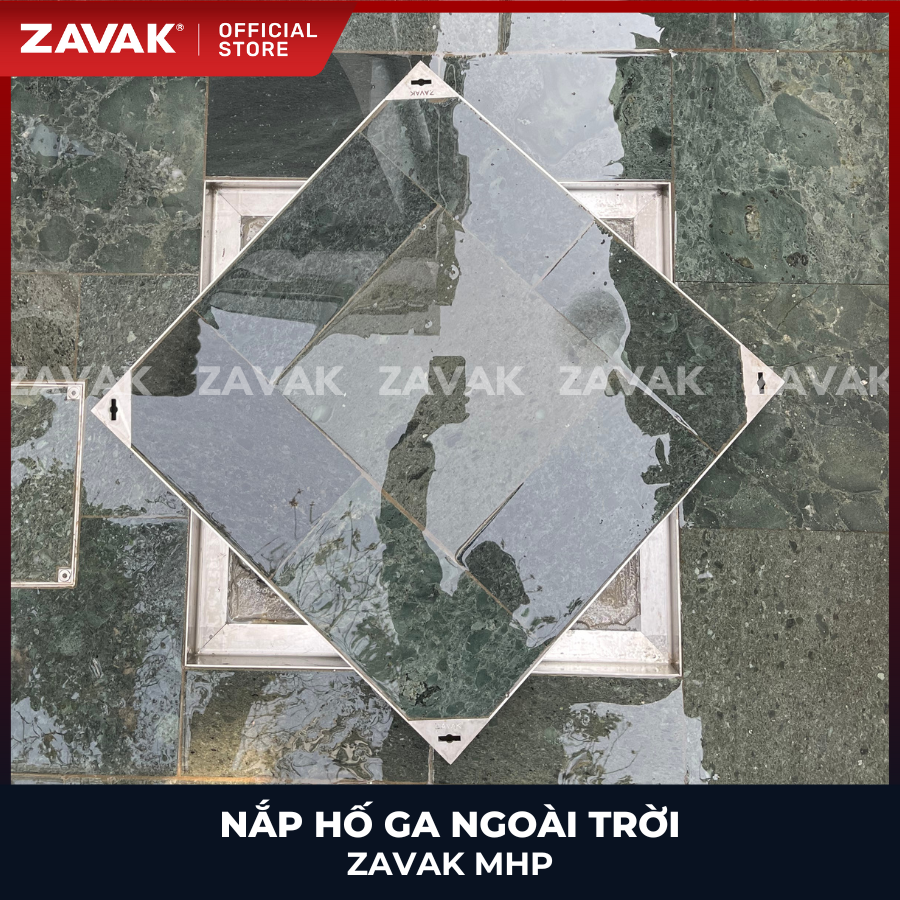 ✨Nắp hố ga ngoài trời inox ZAVAK MHP*-AA60 / KT 60x60cm, lát gạch tối đa 4cm/ tải 800kg