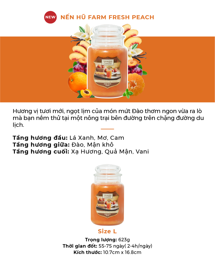 ✨Nến hũ Yankee Candle size L - Farm Fresh Peach (623g)